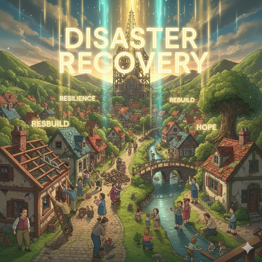 - 해석: 지진, 홍수, 또는 대규모 시스템 오류와 같은 재난 발생 후 시스템과 인프라를 복원하는 과정. (경영, 기술 지문에서 중요)