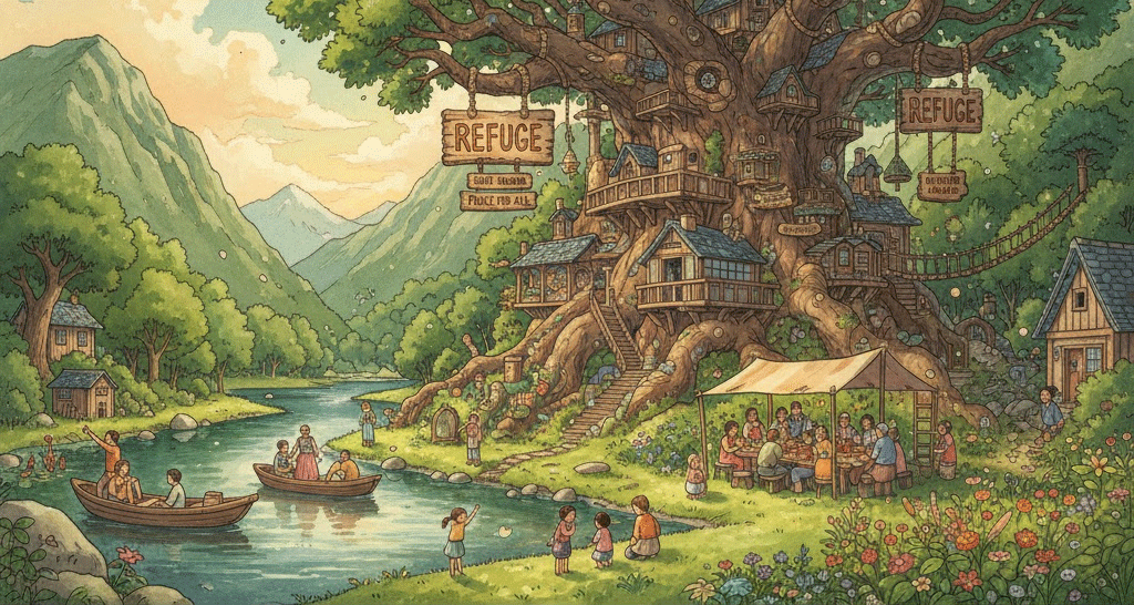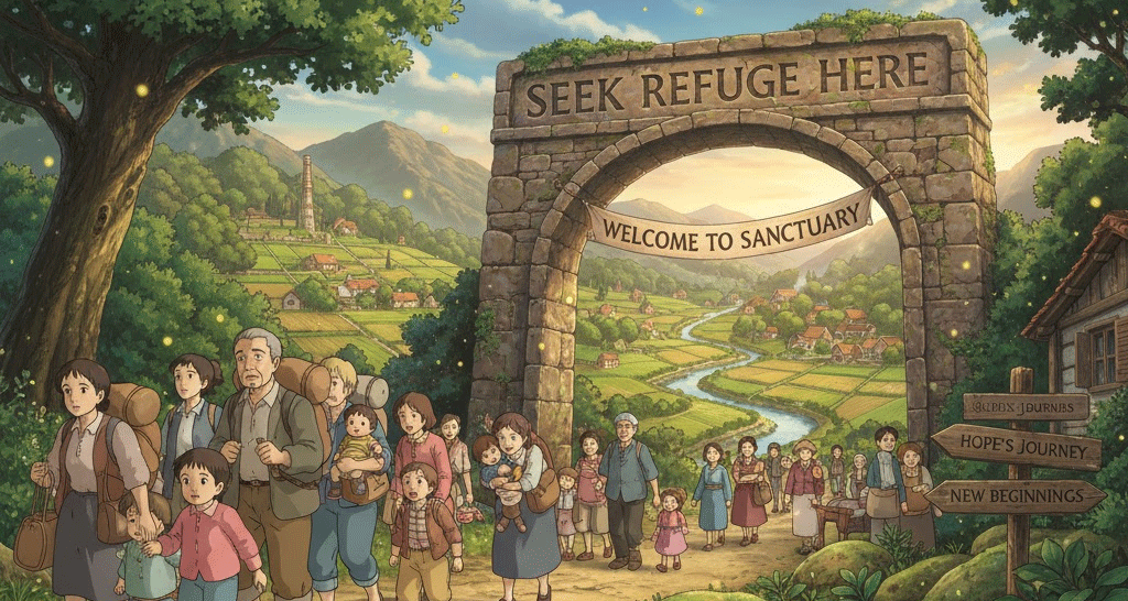 place of refuge, safe refuge, city of refuge, refugee camp, refuge status, tax refuge, ecological refuge