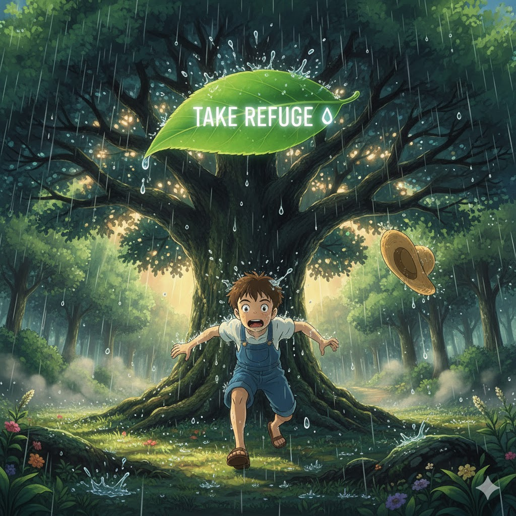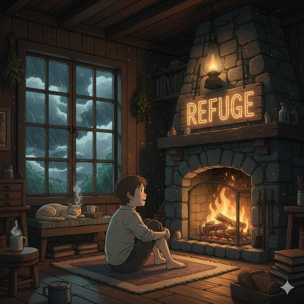 피난처, 피난. 위험이나 고통으로부터의 보호 장소나 심리적 위안.
