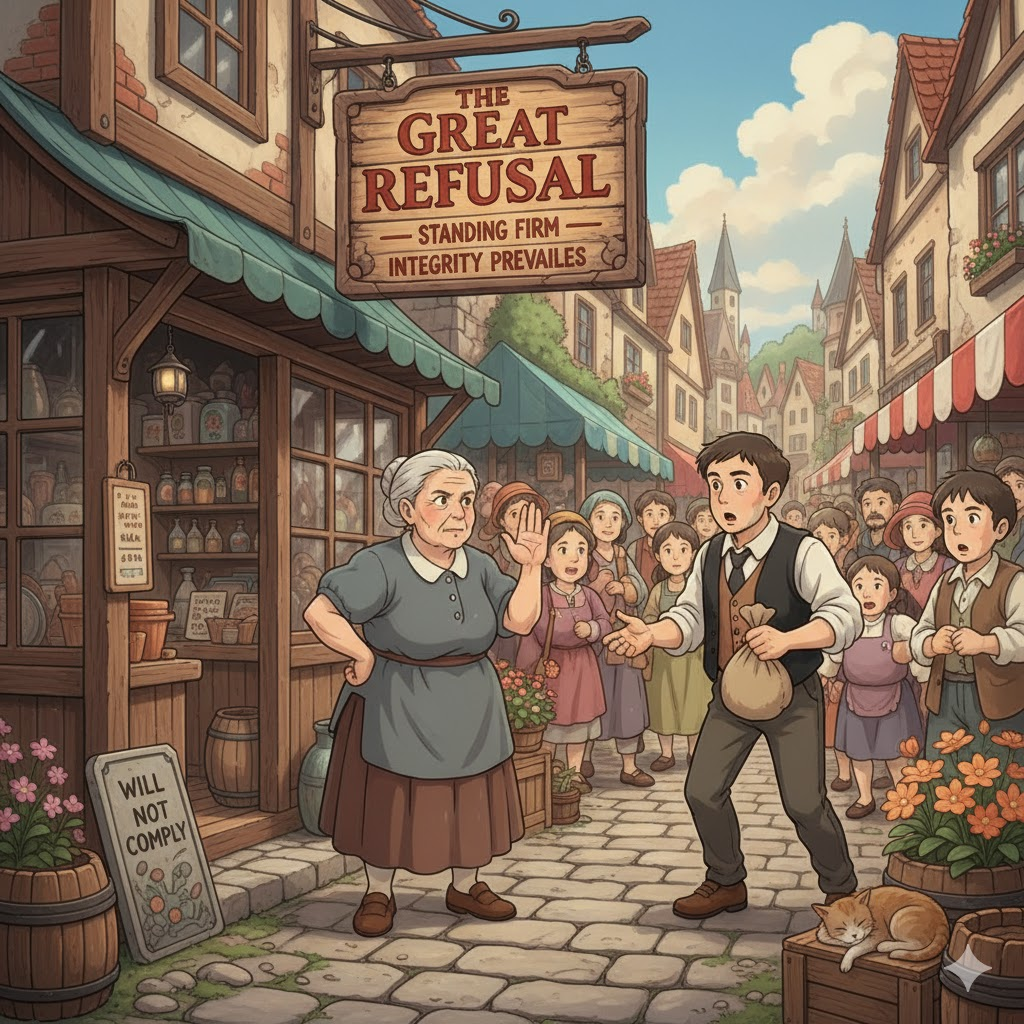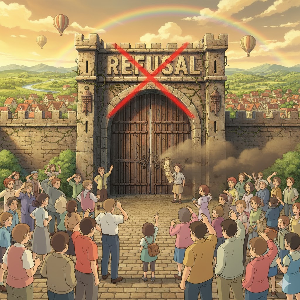 - 해석: 결정이나 태도를 바꾸지 않고 굳건하게 거부하는 행위.