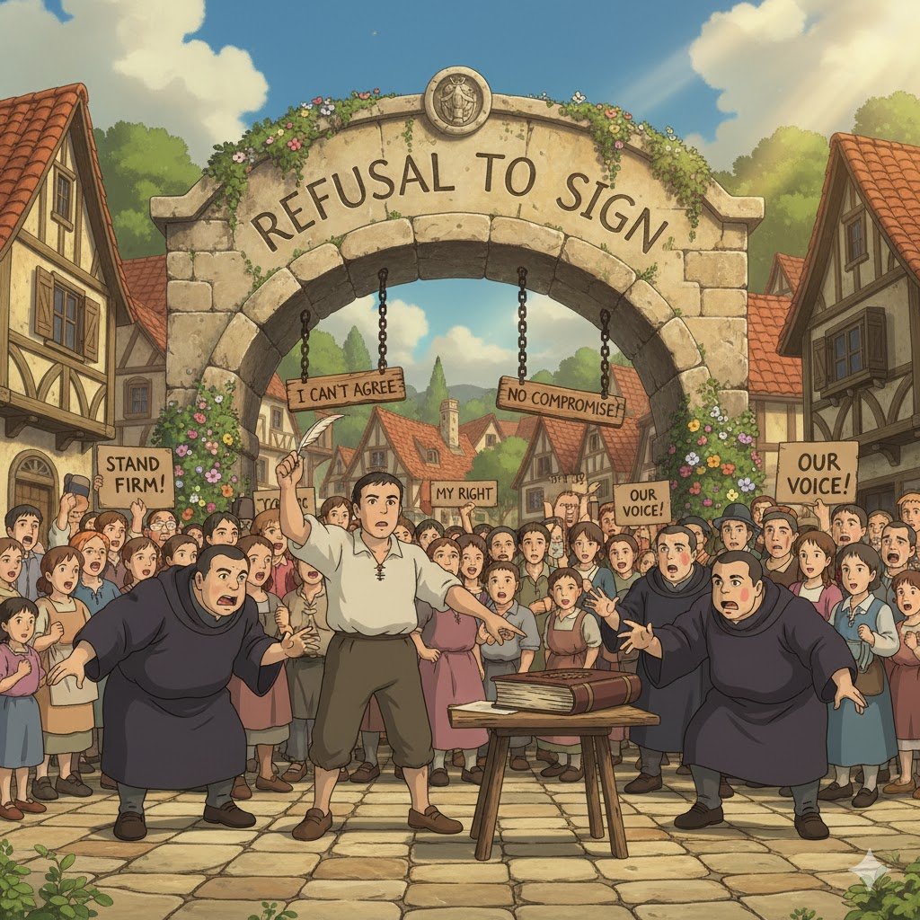 - 해석: 법적 또는 공식적인 문서에 서명하여 동의하는 것을 거부하는 행위.