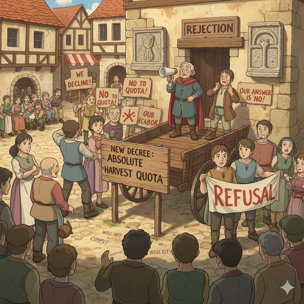 | 종합 뉘앙스 | 타인의 요구에 대해 협조하거나 동의하지 않겠다는 의지를 명확히 밝히는 행위. | '비협조적 의지 표명' |