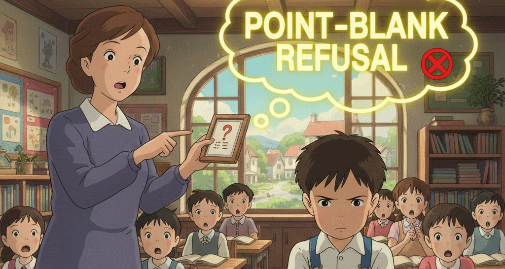 - 해석: 둘러대지 않고, 매우 직접적이고 분명하게 거부하는 행위. (flat refusal과 유사)