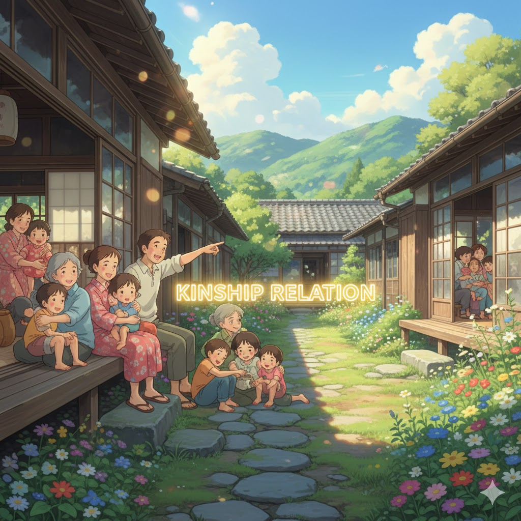 '개인'(individual)들이 '혈연'(blood), '결혼'(marriage), 또는 '입양'(adoption)을 '통해' '가족'(family)이나 '친족'(kin)으로 '연결'(connection)되어 '맺는' '관계'(relation)를 의미합니다. '사회적'(social) '구조'(structure), '상속'(inheritance), 또는 '문화적'(cultural) '전통'(tradition) '연구'(study)에 초점이 맞춰집니다.