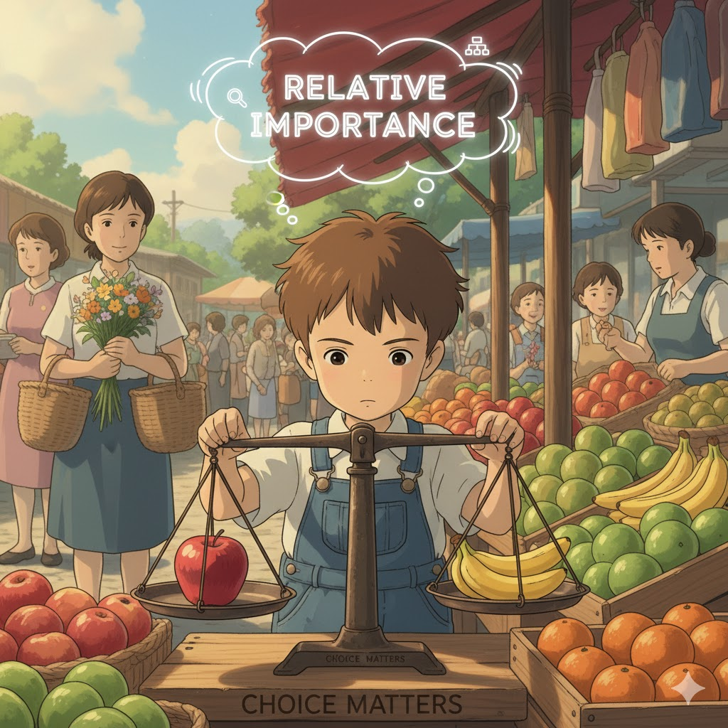 - 해석: 절대적인 가치가 아닌, 다른 요소나 사안과 비교했을 때의 중요도나 비중.