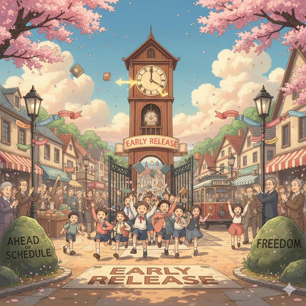 - 해석: 예정된 기한보다 앞당겨 죄수를 풀어주거나, 제품이나 영화 등을 출시하는 행위.