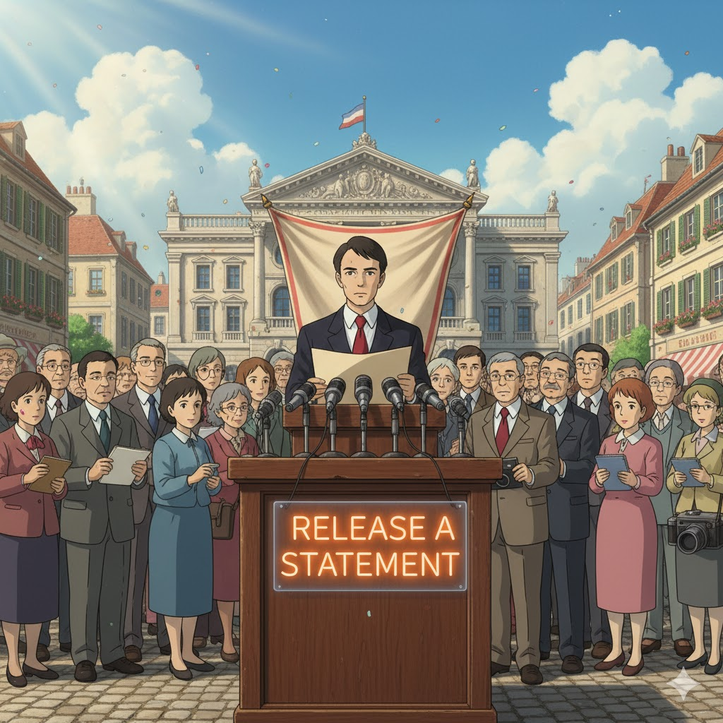 - 해석: 조직이나 개인이 특정 사건이나 사안에 대한 공식적인 입장을 담은 문서를 대중에게 공개하는 행위.