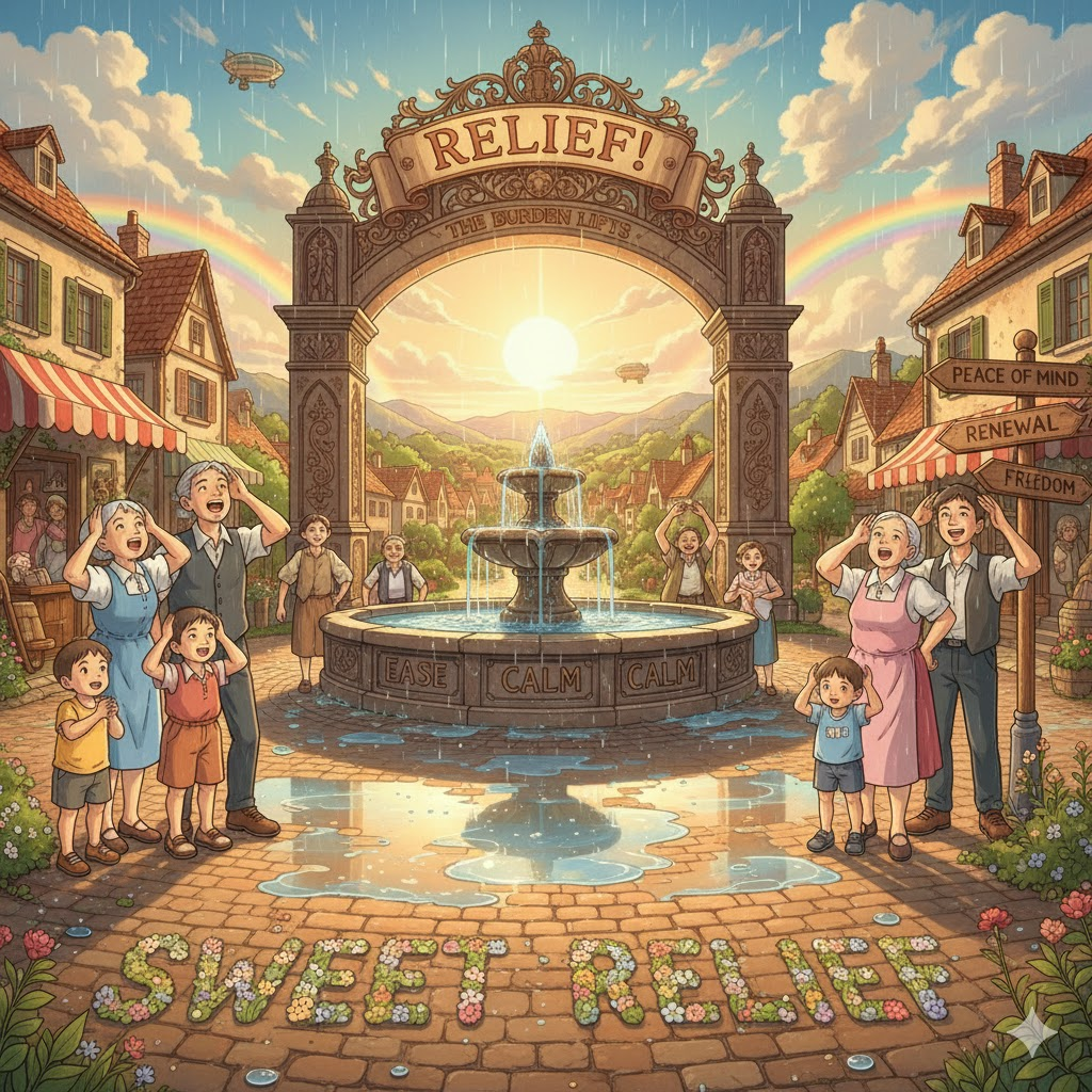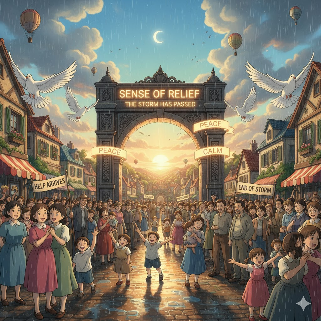 - 해석: 걱정, 압박, 또는 위험한 상황이 끝났거나 해소되었을 때 편안한 감정을 느끼는 행위.
