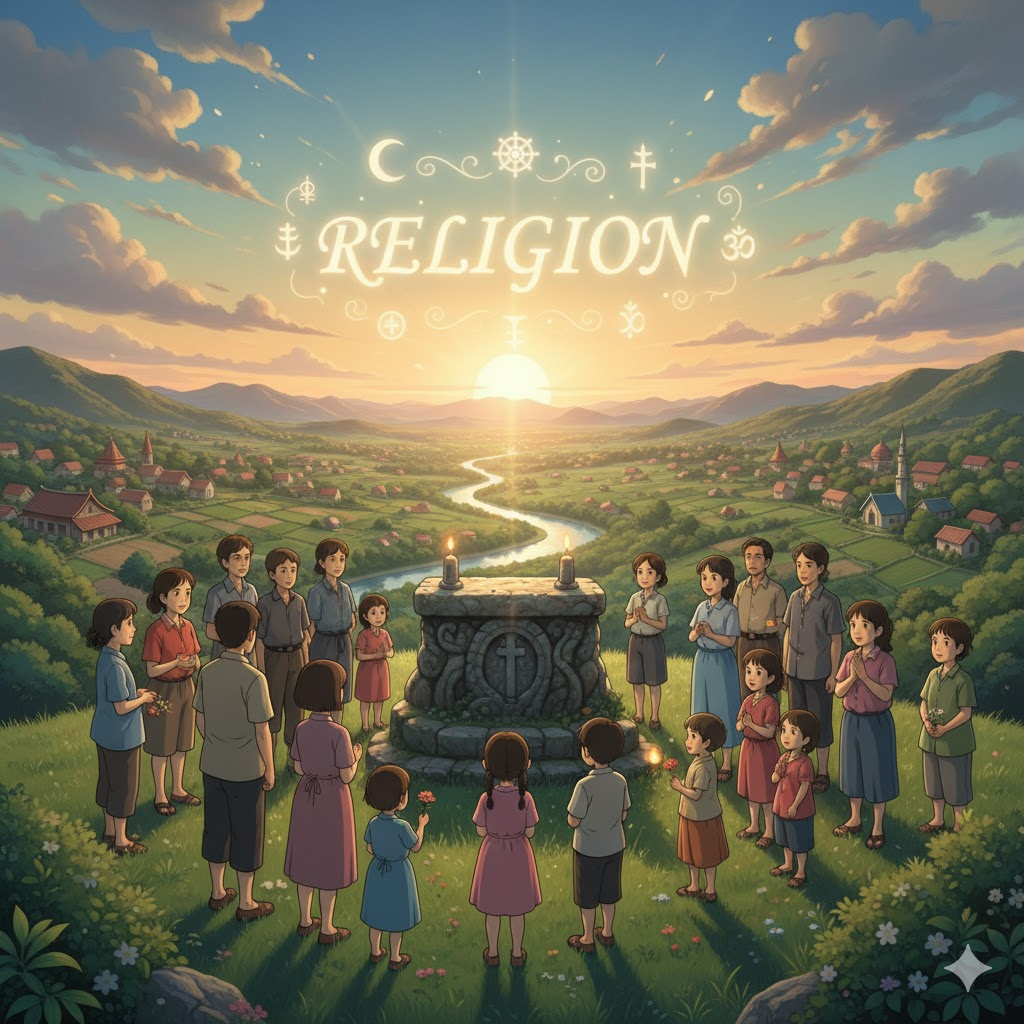 'religion'은 기본적으로 "종교"라는 뜻으로 쓰이며, 초자연적인 힘에 대한 믿음과 숭배, 그리고 그에 따른 행동 규범, 의례, 윤리를 포함하는 사회적-문화적 시스템을 의미합니다. 윤리, 사회, 역사, 정치 관련 지문에서 가장 근본적이고 핵심적인 개념입니다.