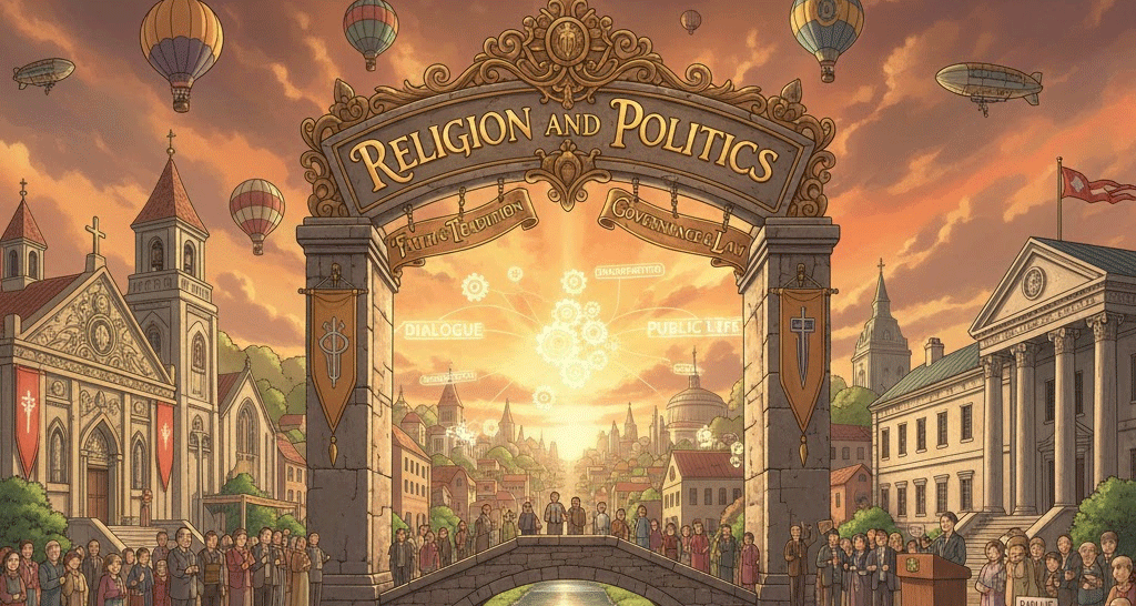 religion and politics [rɪˈlɪdʒən ænd ˈpɑːlɪtɪks]