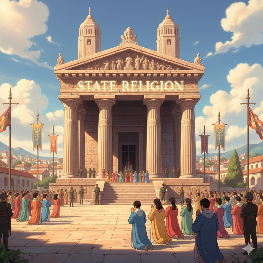 - 해석: 국가나 정부에 의해 공식적으로 인정되고 지원받는 종교. (정치, 역사 지문에서 중요)