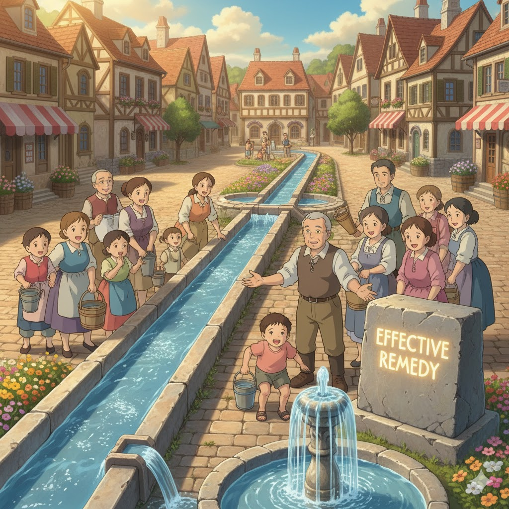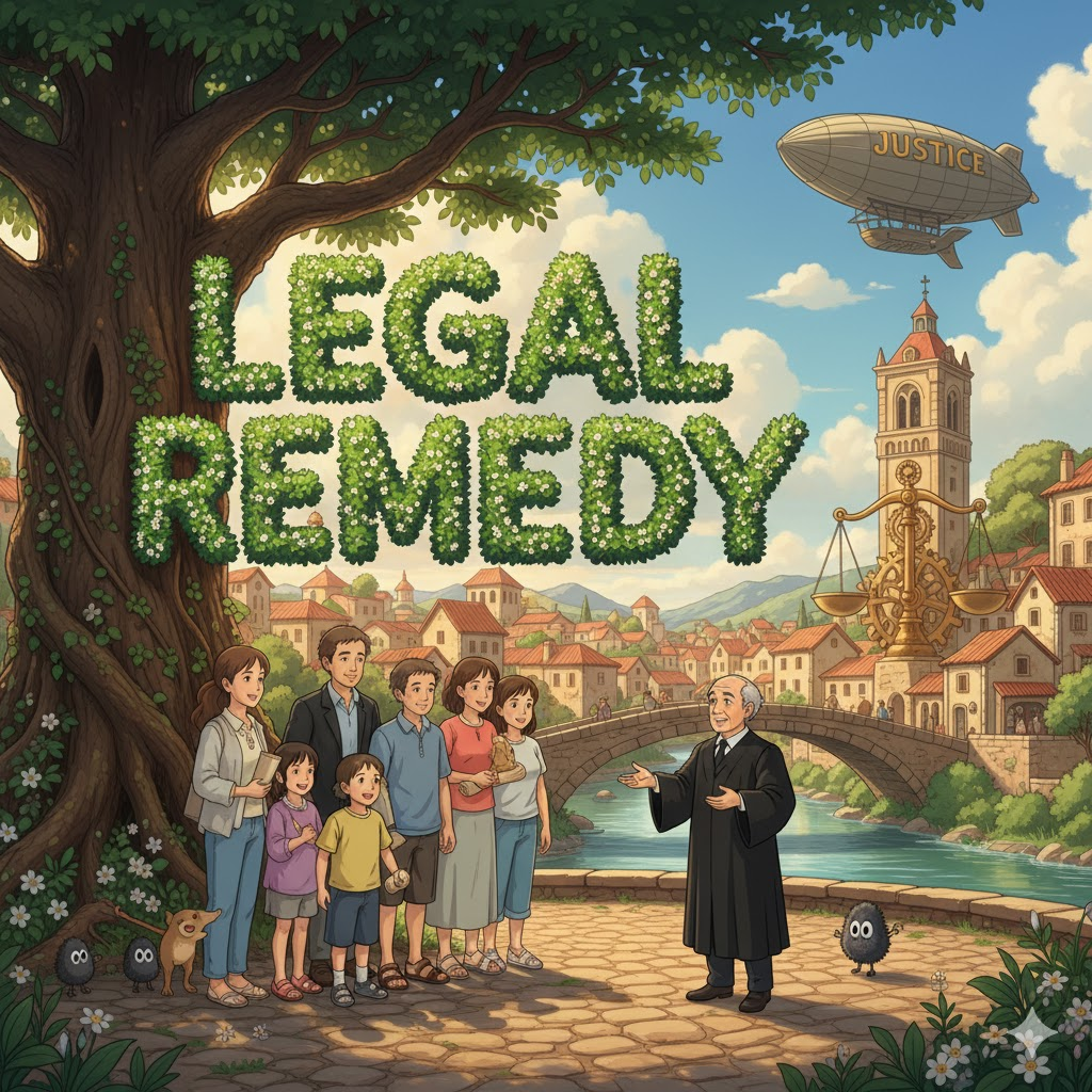 - 해석: 법률에 근거하여 손해를 입은 당사자에게 권리를 회복시키거나 손해 배상을 제공하는 수단. (법률 지문에서 가장 중요)