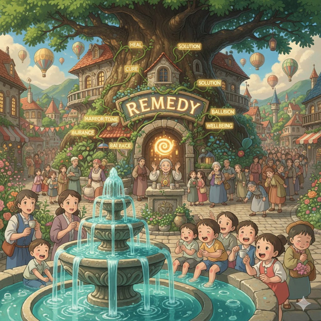 (숙어) 민간요법, 천연 치료제, 사용 가능한 해결책, 공평한 구제, 만병통치약