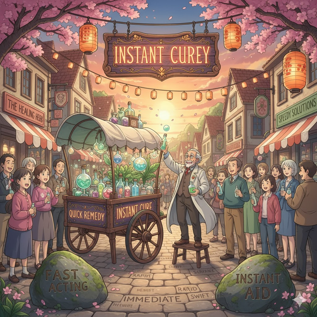 - 해석: 시간을 들이지 않고 즉시 문제나 고통을 해소하는 방법.