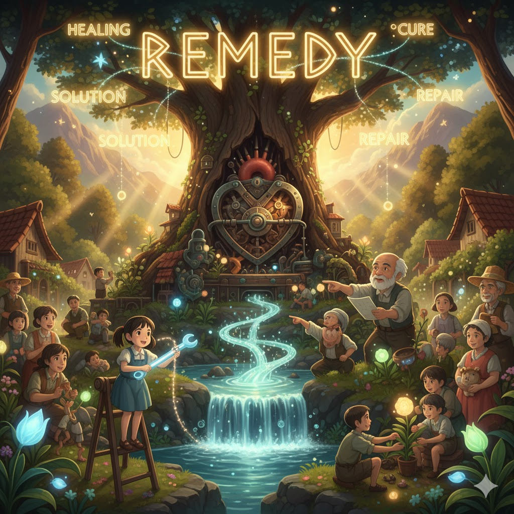 해결책, 치료, 구제. 문제나 결함을 고치기 위한 수단이나 행위.