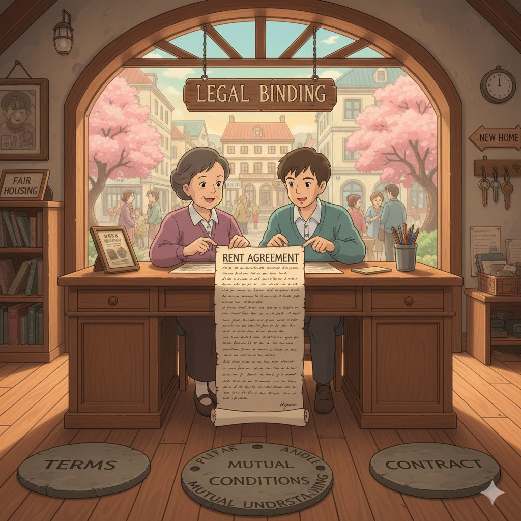 - 해석: 부동산 소유자(집주인)와 임차인(세입자) 사이에 임대 기간, 임대료, 조건 등을 명시한 법적 합의. (법률 지문에서 중요)