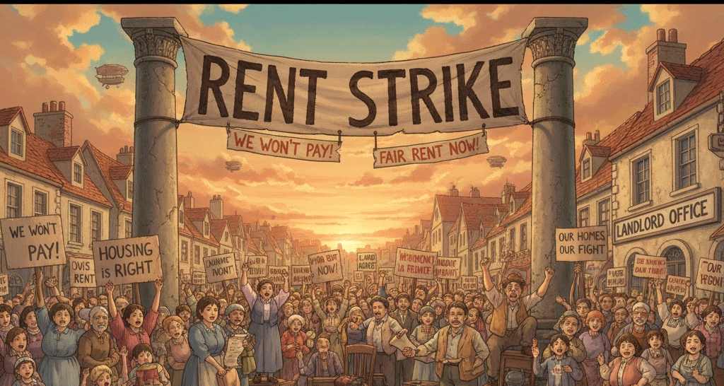 - 해석: 세입자들이 집단적으로 임대료 납부를 거부하여 집주인이나 정부에 대한 압력을 행사하는 사회 운동.