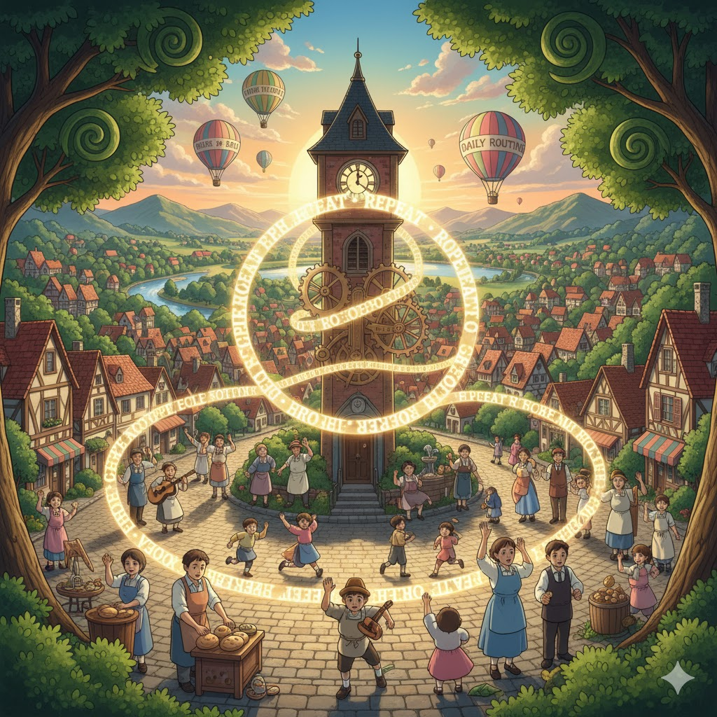 - 해석: 특정 행동, 사건, 또는 현상이 규칙적이고 예측 가능한 형태로 다시 나타나는 행위.