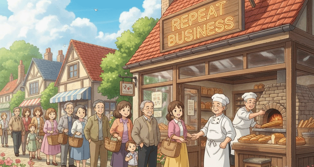 - repeat customer와 repeat business는 안정적인 수익을 확보하고 마케팅 비용을 절감하는 경영 전략의 핵심입니다. 지문은 고객 충성도가 단기적인 거래가 아닌 장기적인 신뢰와 만족을 통해 구축됨을 강조합니다.