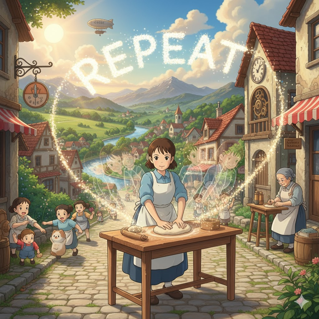 이 표현들은 '반복의 지속성'과 '역사의 교훈'에 초점을 맞춥니다. 'on repeat'은 '음악이나 영상을' '끊임없이 반복해서' '재생하고 있는' 상태를 의미합니다. 'repeat history'는 '과거의 실수나 불행한 사건을' '교훈 삼지 못하고' '유사한 형태로 다시 겪는' 것을 의미하는 비유적인 표현입니다.
