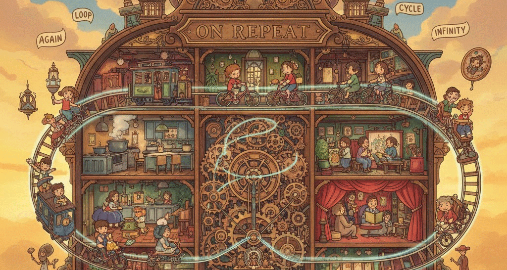 on repeat [ɑːn rɪˈpiːt]