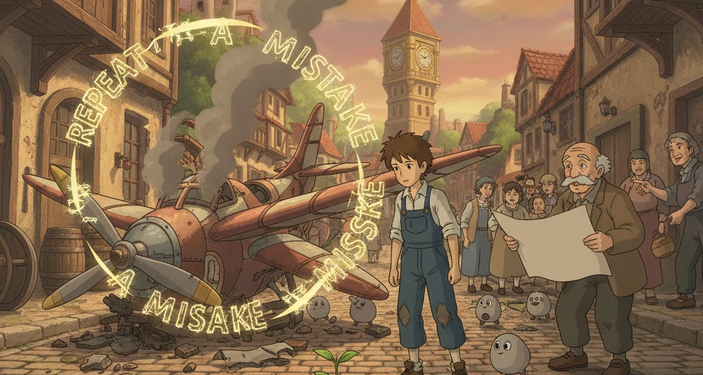 '과거'(past)에 '발생'(happen)했던 '실수'(mistakes), '갈등'(conflict), 또는 '부정적인'(negative) '패턴'(pattern)이 '현재'(present) '비슷한'(similar) '방식'(manner)으로 '다시'(repeat) '나타나는' 현상을 의미합니다. '인간'(human) '본성'(nature)의 '실패'(failure) '패턴'에 대한 '경고'(warning)나 '교훈'(lesson)을 강조합니다.