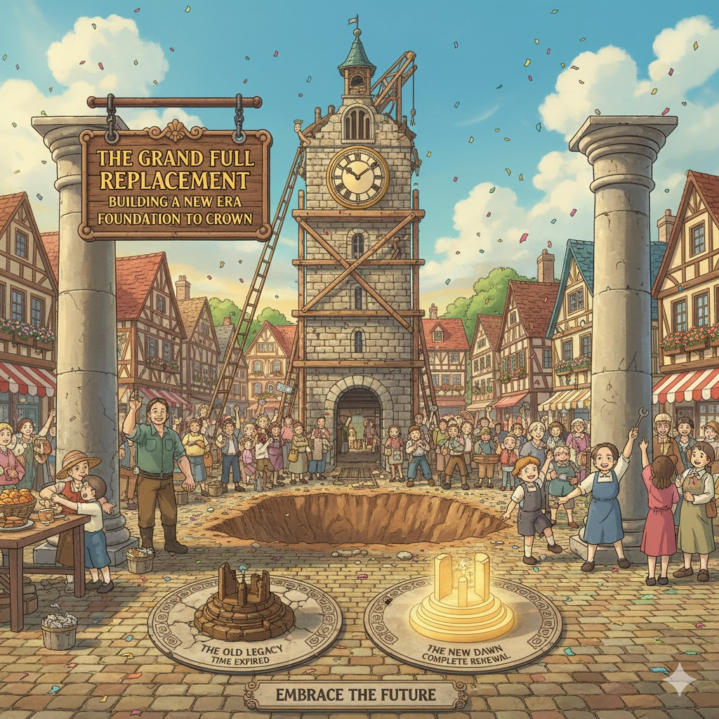 - 해석: 부분적인 수리나 교체가 아닌, 전체 장치나 시스템을 새로운 것으로 바꾸는 행위.