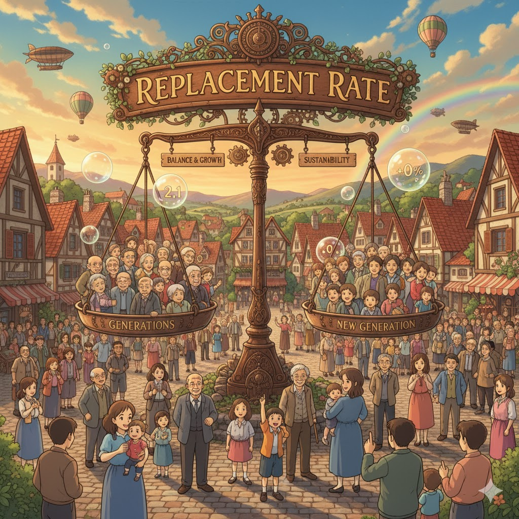 '노동력'(labor force)이나 '인구'(population) '감소'(decline)를 '막고'(prevent) '안정'(stability)을 '유지'(maintain)하기 위해, '필요'(need)한 '출산율'(fertility rate)이나 '이직'(turnover) '비율'을 '측정'(measure)하는 '통계적'(statistical) '지표'(indicator)를 의미합니다. '인구학'(demographics) 및 '경제'(economic) '계획'(plan)에 초점이 맞춰집니다.