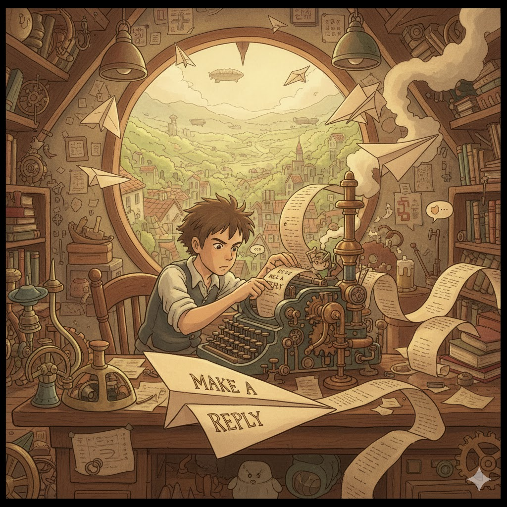 - 해석: 메시지, 이메일, 또는 편지에 대한 응답을 작성하여 발송하는 행위.