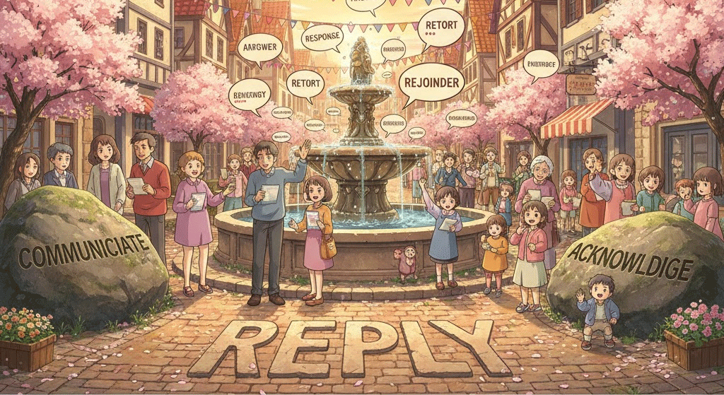 | 고대 프랑스어 replier (되접어 말하다) | "던져진 것에 대해 되돌려 말하다" | 질문에 대한 응답/대답 → 서면 회신 → 법적 반박/답변 |
