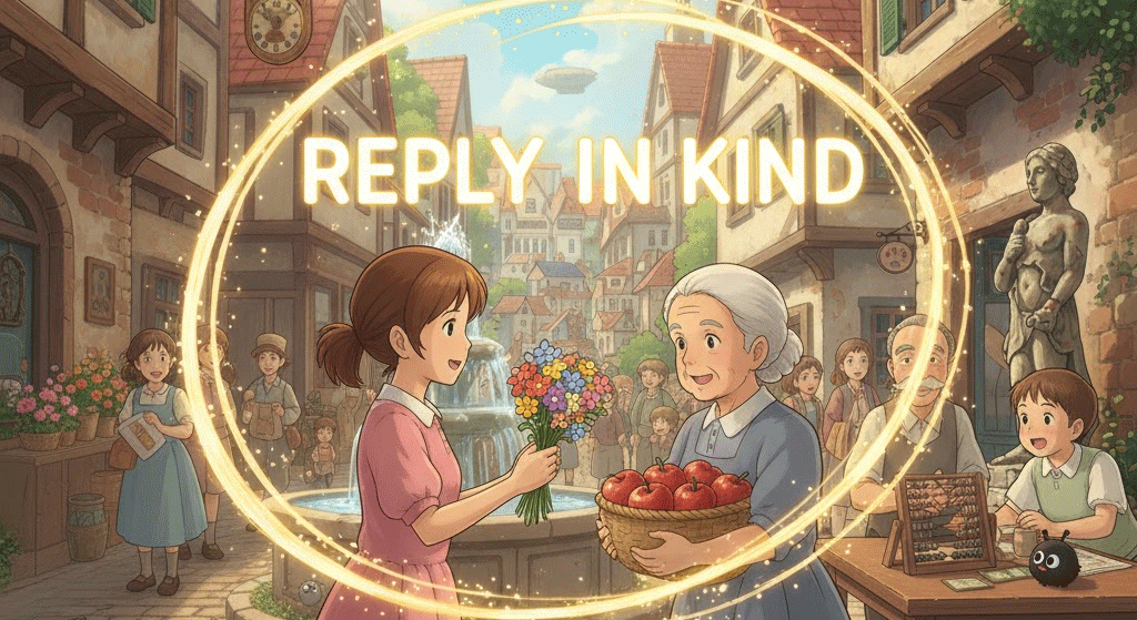 - 해석: 상대방이 한 행동과 동일하거나 비슷한 방식으로 되돌려주는 행위 (호의든 적의든).