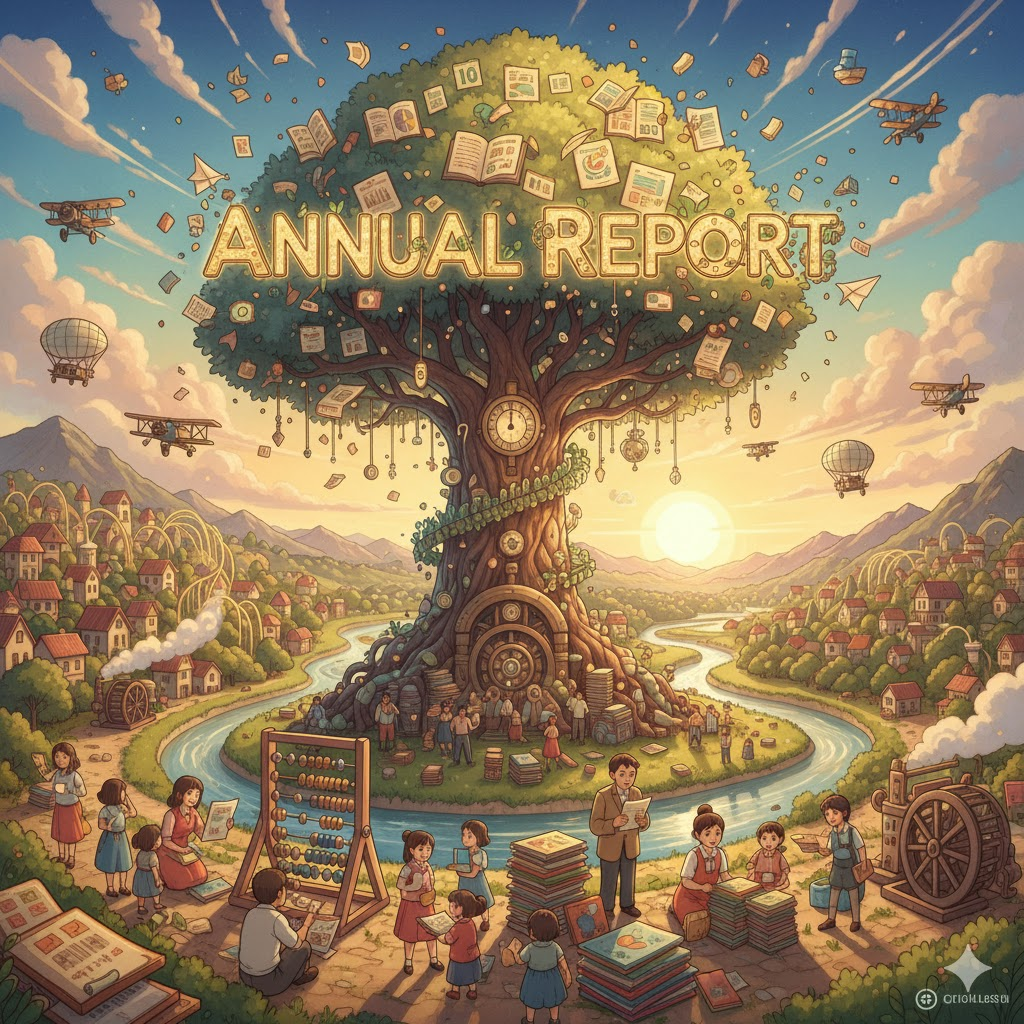- 해석: 1년 동안 기업이나 조직의 재무 상태, 활동, 성과 등을 종합하여 대중이나 주주에게 발표하는 공식 문서.