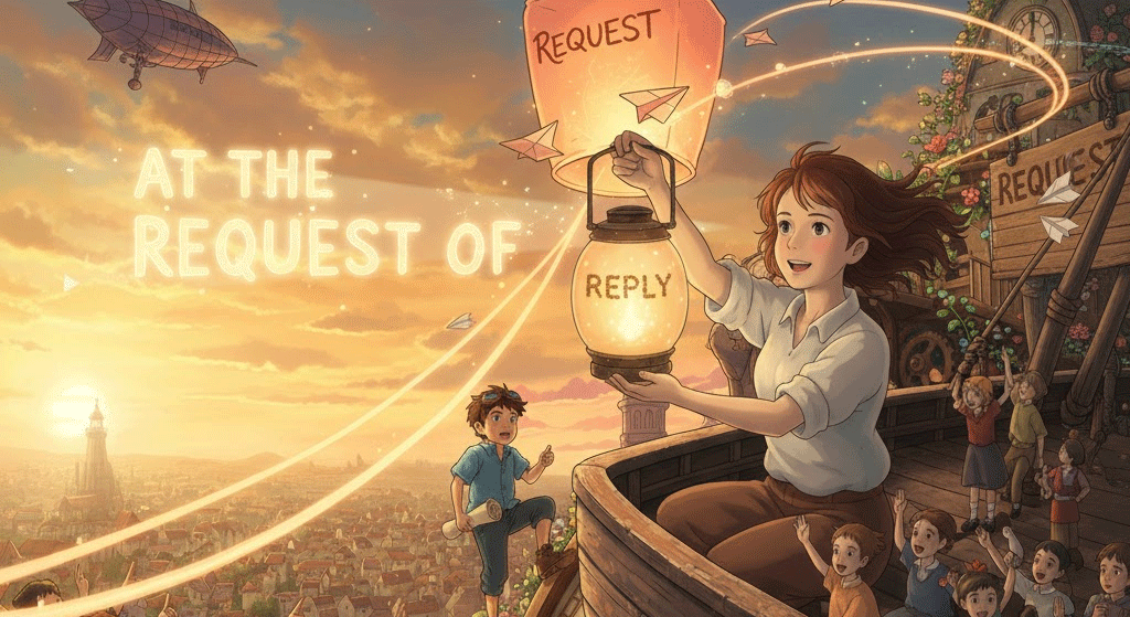 - 해석: 특정 개인, 기관, 또는 당사자의 공식적인 요구에 따라 어떤 행동이 이루어졌음을 나타냄. (격식 있는 표현)
