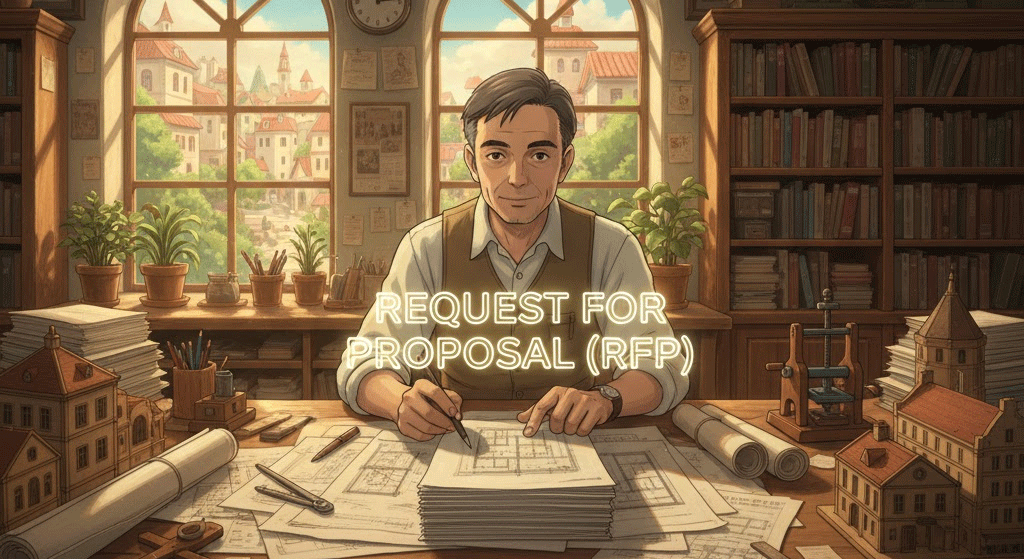 - 해석: 조직이 특정 프로젝트를 수행하기 위해 공급업체나 컨설팅 회사에게 공식적인 해결책 제안서를 제출해 달라고 요청하는 문서. (비즈니스, 공공 계약 지문에서 중요)
