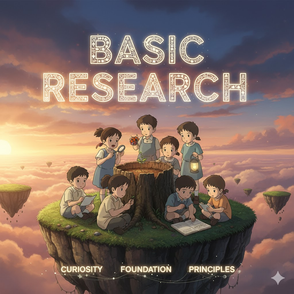 - 해석: 특정 응용 목적 없이, 현상에 대한 지식 자체를 확장하는 것을 유일한 목표로 하는 연구. (응용 연구와 대비)