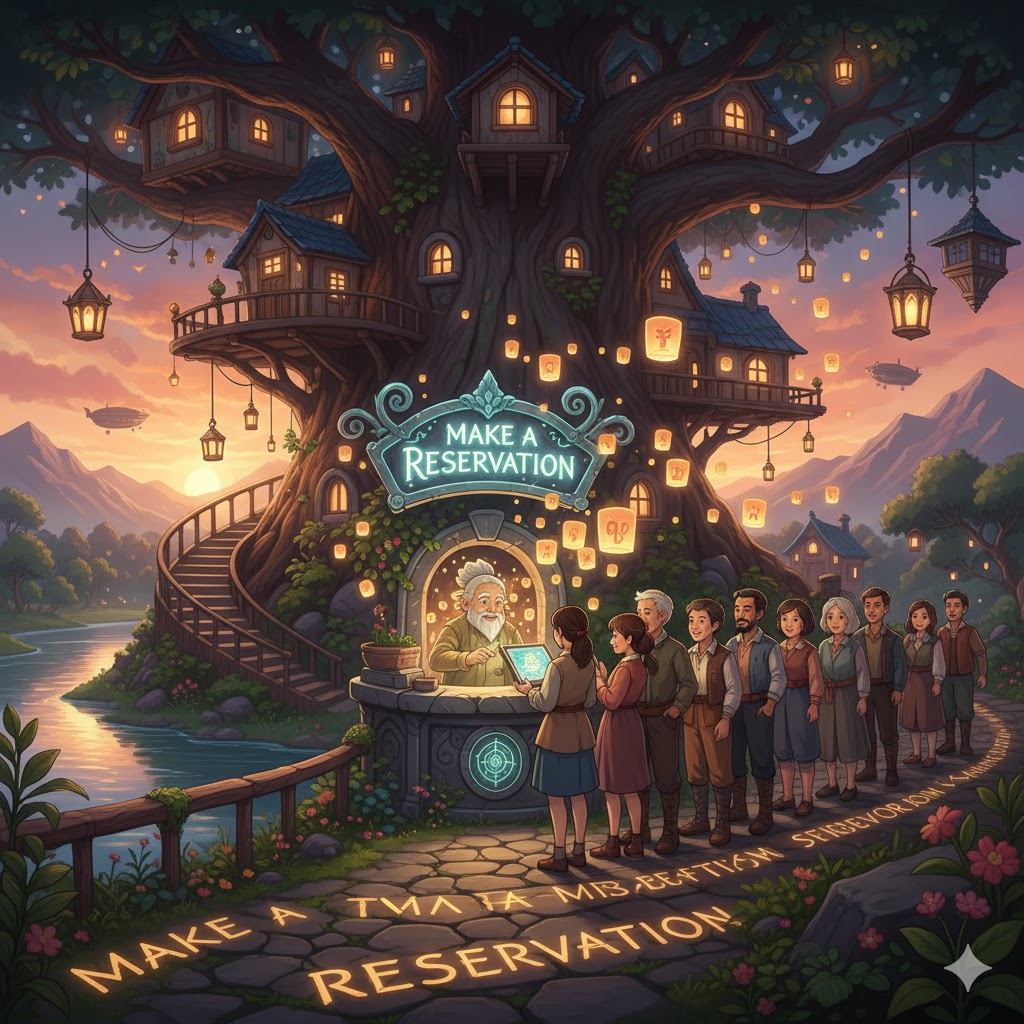 - 해석: 호텔 객실을 특정 날짜에 미리 확보하는 행위.
