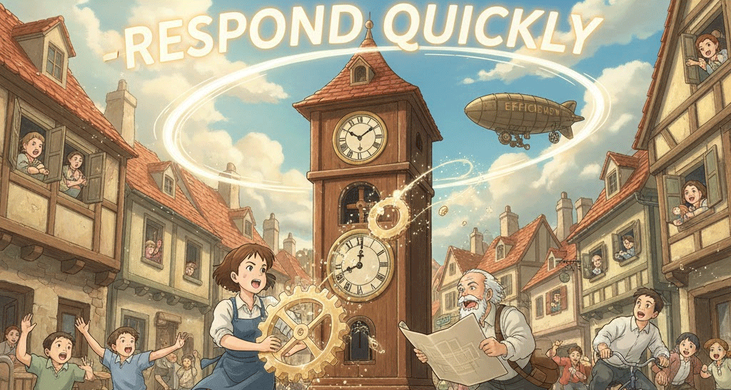 - 해석: 자극이나 상황에 대해 지체 없이 빠른 시간 내에 반응하는 행위. (효율성, 안전 지문에서 중요)