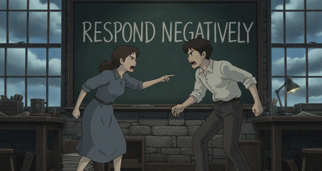 - 해석: 비판적, 비관적, 또는 파괴적인 태도로 반응하는 행위.