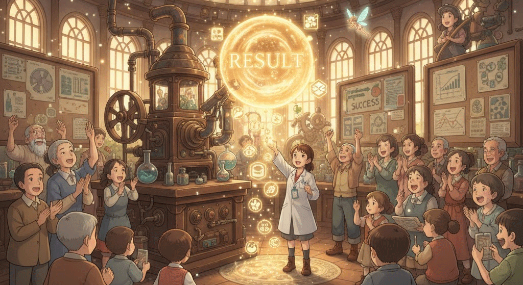'result'는 논리적 인과 관계, 과학적 검증, 그리고 성과 평가를 다루는 모든 학술 지문에서 가장 핵심적인 개념입니다. 원인과 결과의 명확성이 중요합니다.