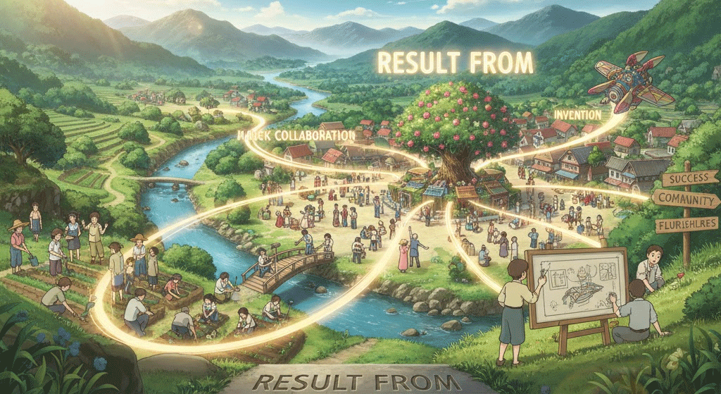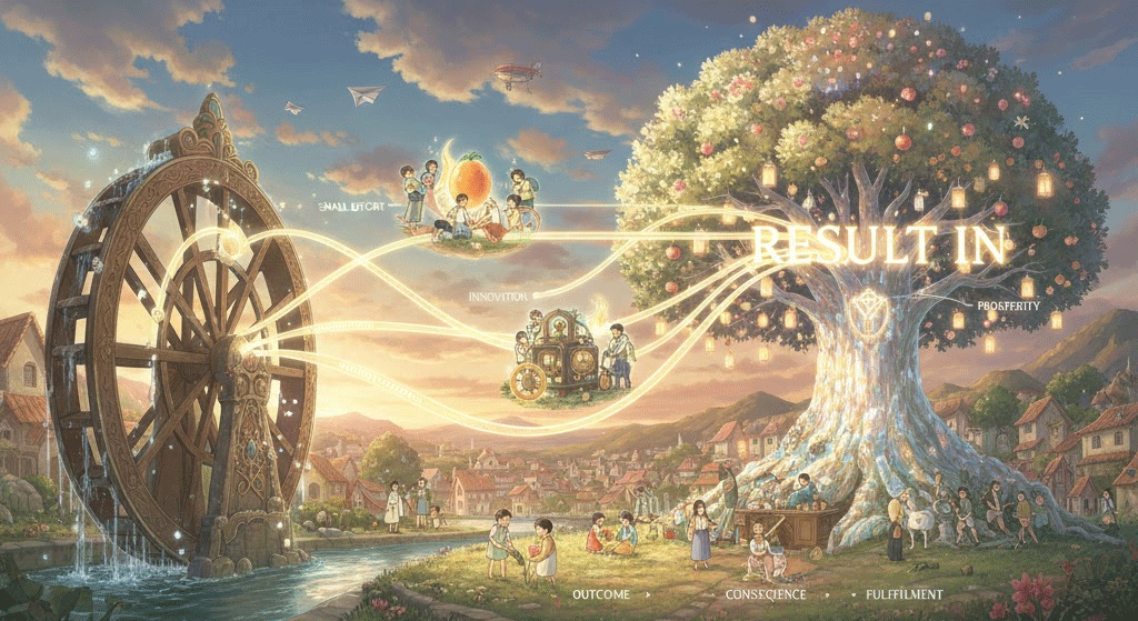 - 해석: 특정 행동, 사건, 또는 상황이 어떤 최종적인 결과를 낳거나 유발하는 행위. (원인-결과 관계를 연결)