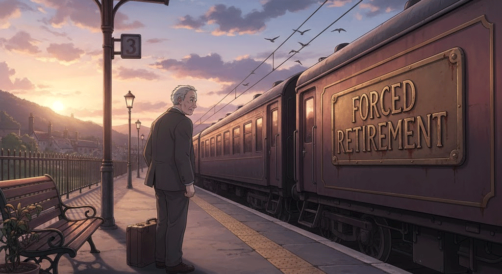 - 해석: 개인의 의사와 관계없이, 회사 정책이나 법률에 의해 정해진 연령에 도달하여 직업을 그만두어야 하는 행위.