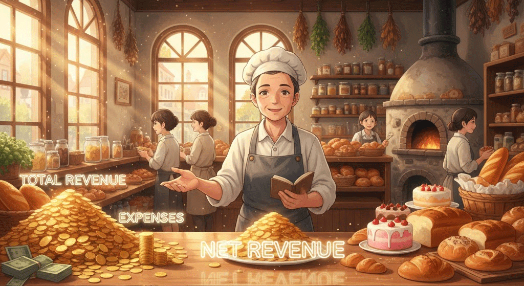 - 해석: 총수익에서 반품, 할인, 수당 등을 공제하고 남은 금액. (회계 지문에서 중요)