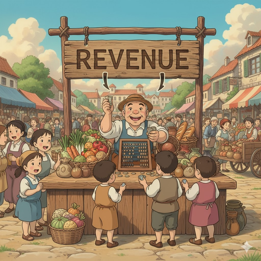 | 라틴어 revenīre (되돌아오다) → 고대 프랑스어 revenue (되돌아온 것) | "주기적으로 회수되어 돌아오는 돈" | 정부의 세입/국고 수입 → 기업의 총 매출액/수익 → 정기적인 수입 |