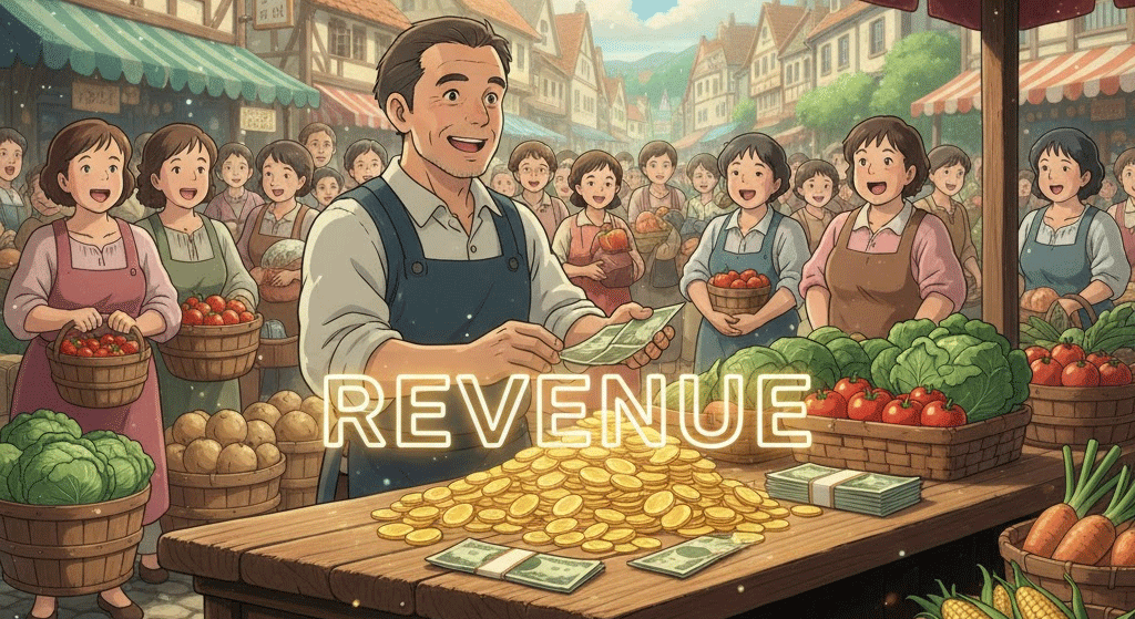 - 해석: 특정 기간 동안 기업이 모든 활동을 통해 벌어들인 화폐의 총액. (비용을 제외하기 전)