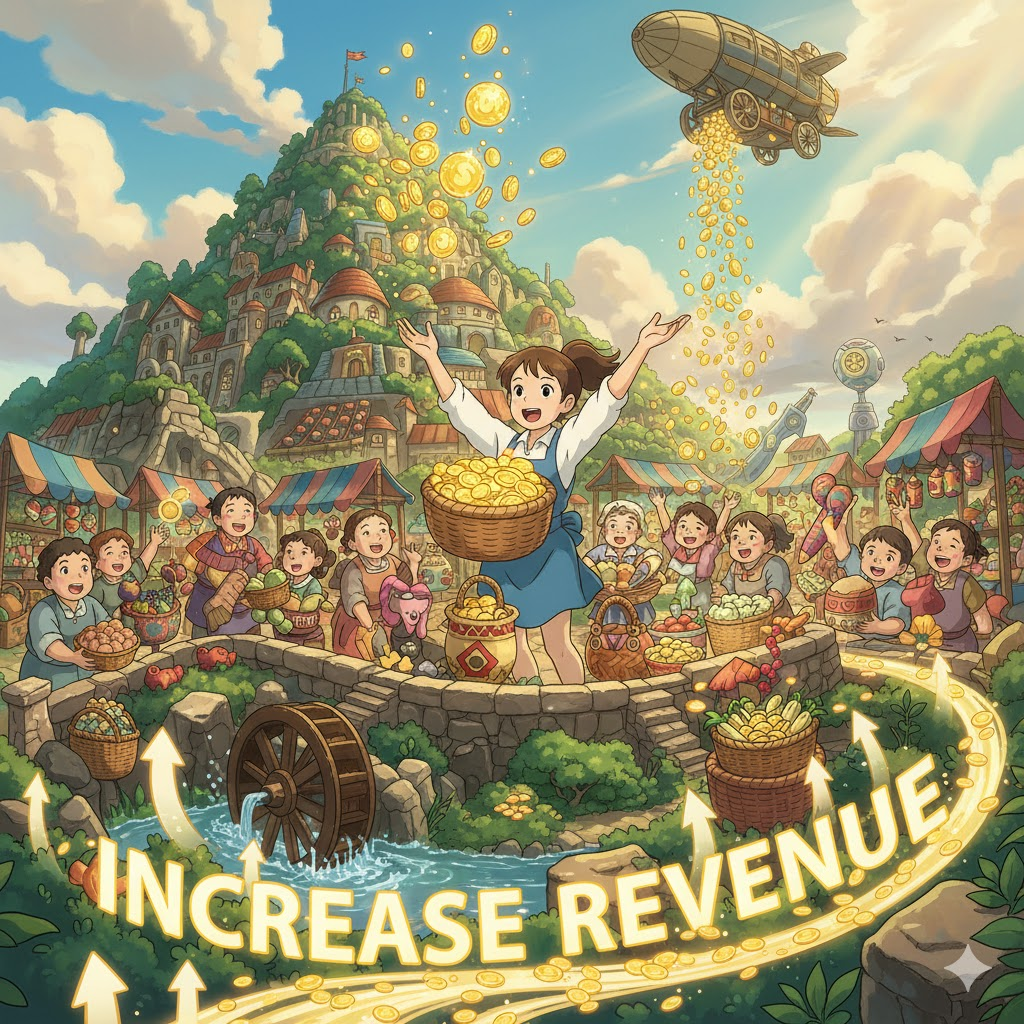 - 해석: 판매 가격 인상, 고객 수 증가 등을 통해 벌어들이는 금액을 늘리는 행위.