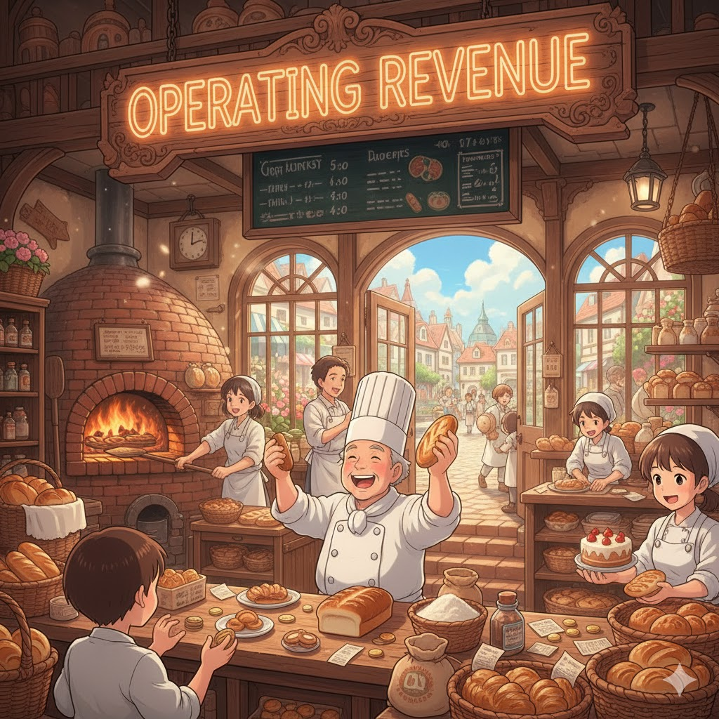 - 해석: 기업의 핵심적이고 주된 영업 활동 (주로 상품 판매나 서비스 제공)을 통해 벌어들인 금액. (비영업 수익과 대비)