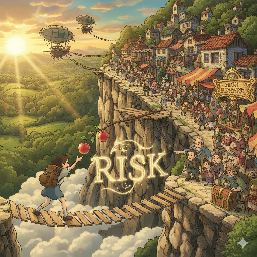 - 해석: 잠재적인 보상이 잠재적인 손실보다 가치가 높다고 판단하여, 신중한 분석 후 감수하는 위험. (충동적인 위험과 대비)