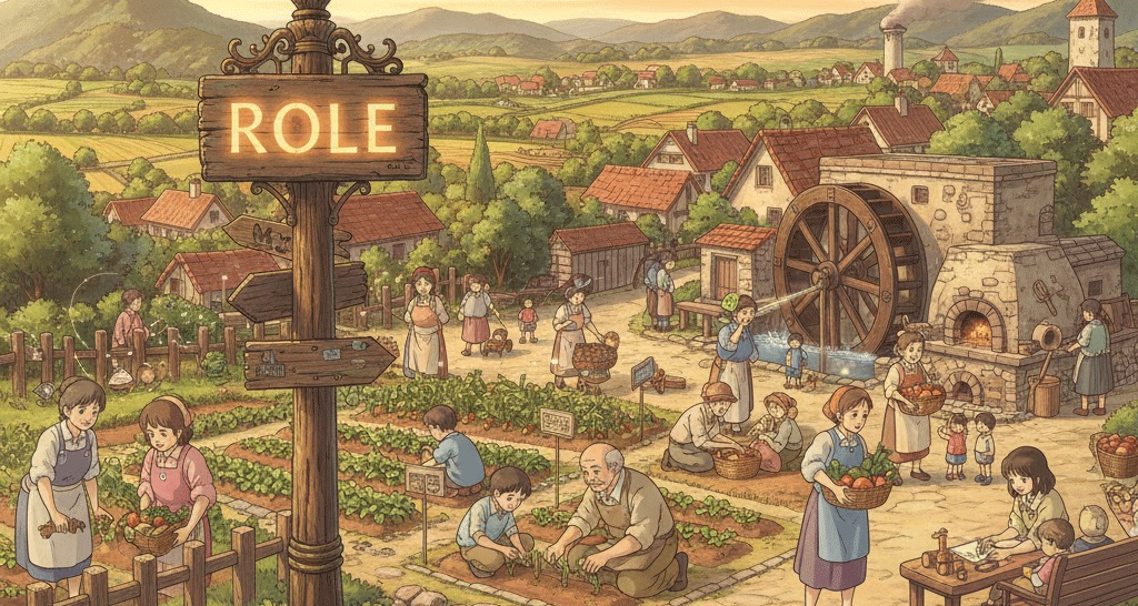 | 고대 프랑스어 role (두루마리, 배역 목록) | "두루마리(목록)에 기록된 배역" | 연극의 배역/등장인물 → 사회적 역할/임무 → 사물의 기능 |