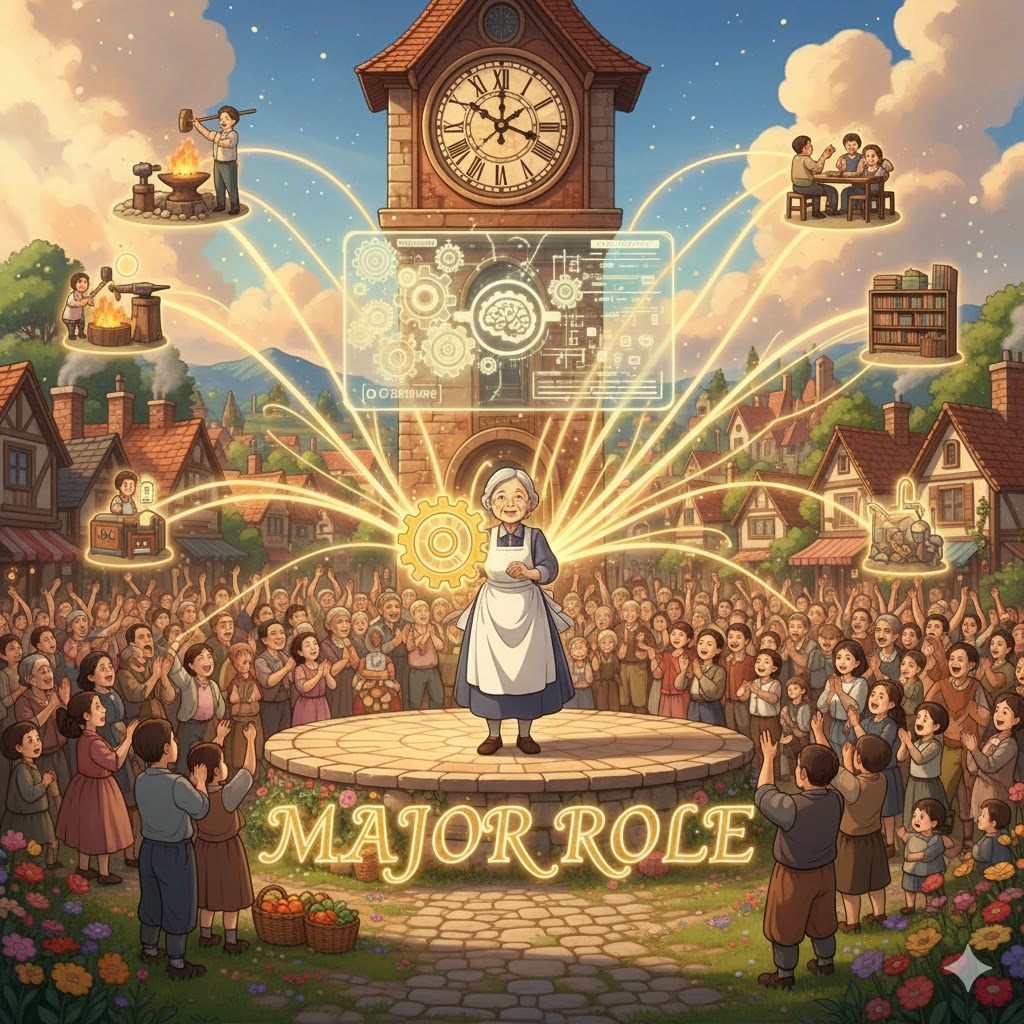 - 해석: 전체 결과에 결정적인 영향을 미치며 가장 중요한 기능. (major role과 유사)