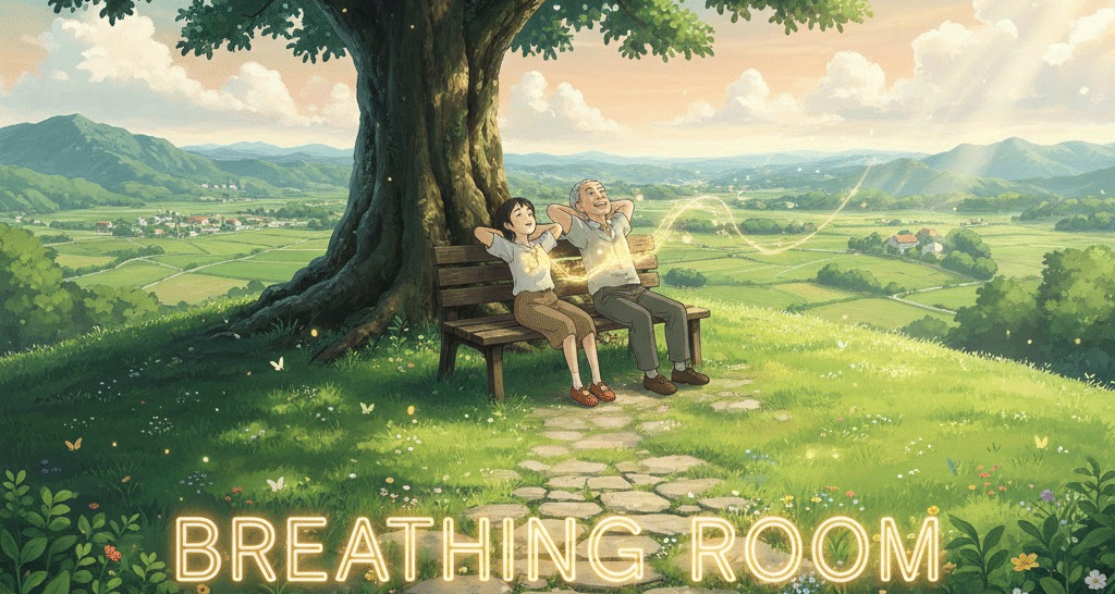- 해석: 압박, 스트레스, 또는 시간적 제약으로부터 벗어나 여유를 가지고 편안하게 대처할 수 있는 공간이나 시간.